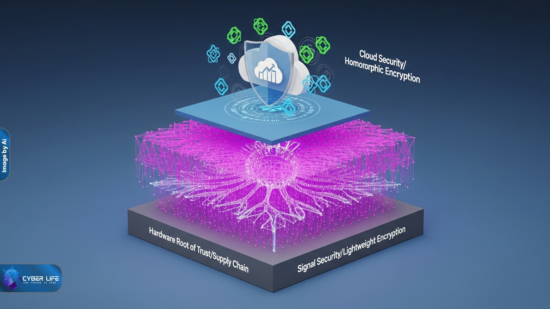 - یکپارچگی زنجیره تأمین (Supply Chain Integrity): امنیت باید سختافزار را نیز پوشش دهد. این کار با استفاده از ریشههای اعتماد سختافزاری (Hardware Roots of Trust)، اثبات دانش صفر (Zero-knowledge proofs) و قابلیت ردیابی مبتنی بر بلاکچین انجام میشود تا از مدارهای دستکاری شده جلوگیری شود.